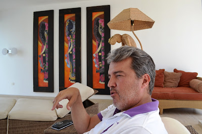 Vine a pasar unos días en Margarita, confiesa inspirado por el suave oleaje del mar tranquilo de La Guardia que roza su casa, porque quiero que mi familia se mantenga vinculada al país, que puedan conocer y ver lo que aquí está pasando, para que no se sientan de menos cuando alguien les vengan a hablar de cualquier geografía del mundo, que puedan sentirse orgullosos de ser venezolanos. Cada vez que piso el Mosaico de Cruz-Diez en el Aeropuerto Simón Bolívar la piel se me eriza; la primera vez que salí hace dos años lloré amargamente, como un niñito.