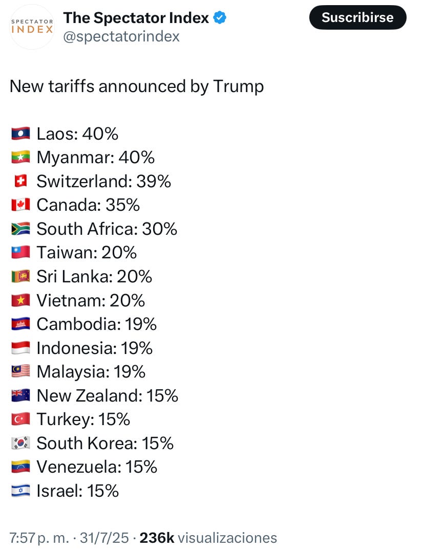 -La Patilla: EEUU impuso arancel recíproco del 15 % a Venezuela.