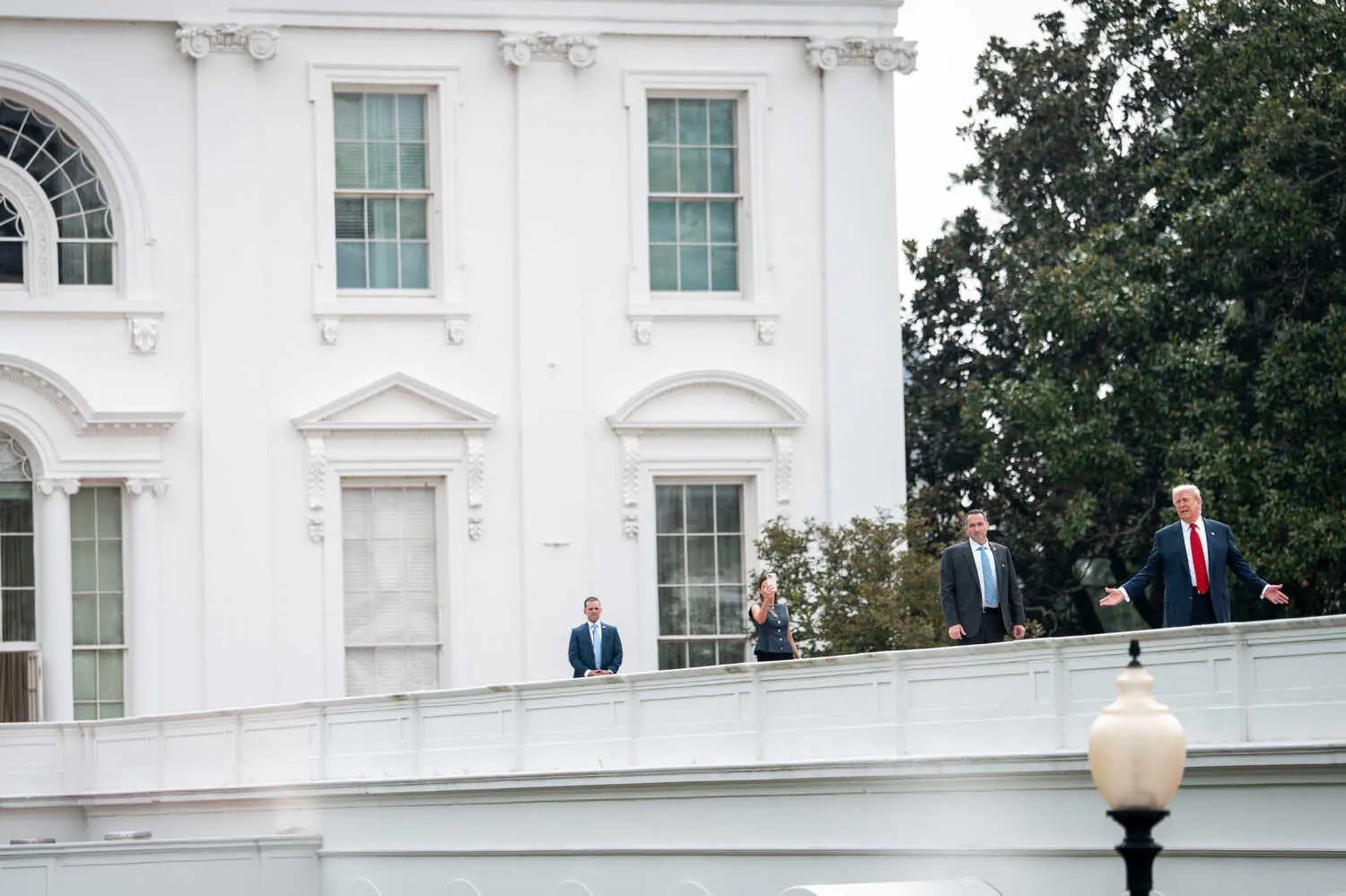 -Diario Las Américas: Trump sube al techo de la Casa Blanca y bromea con periodistas.