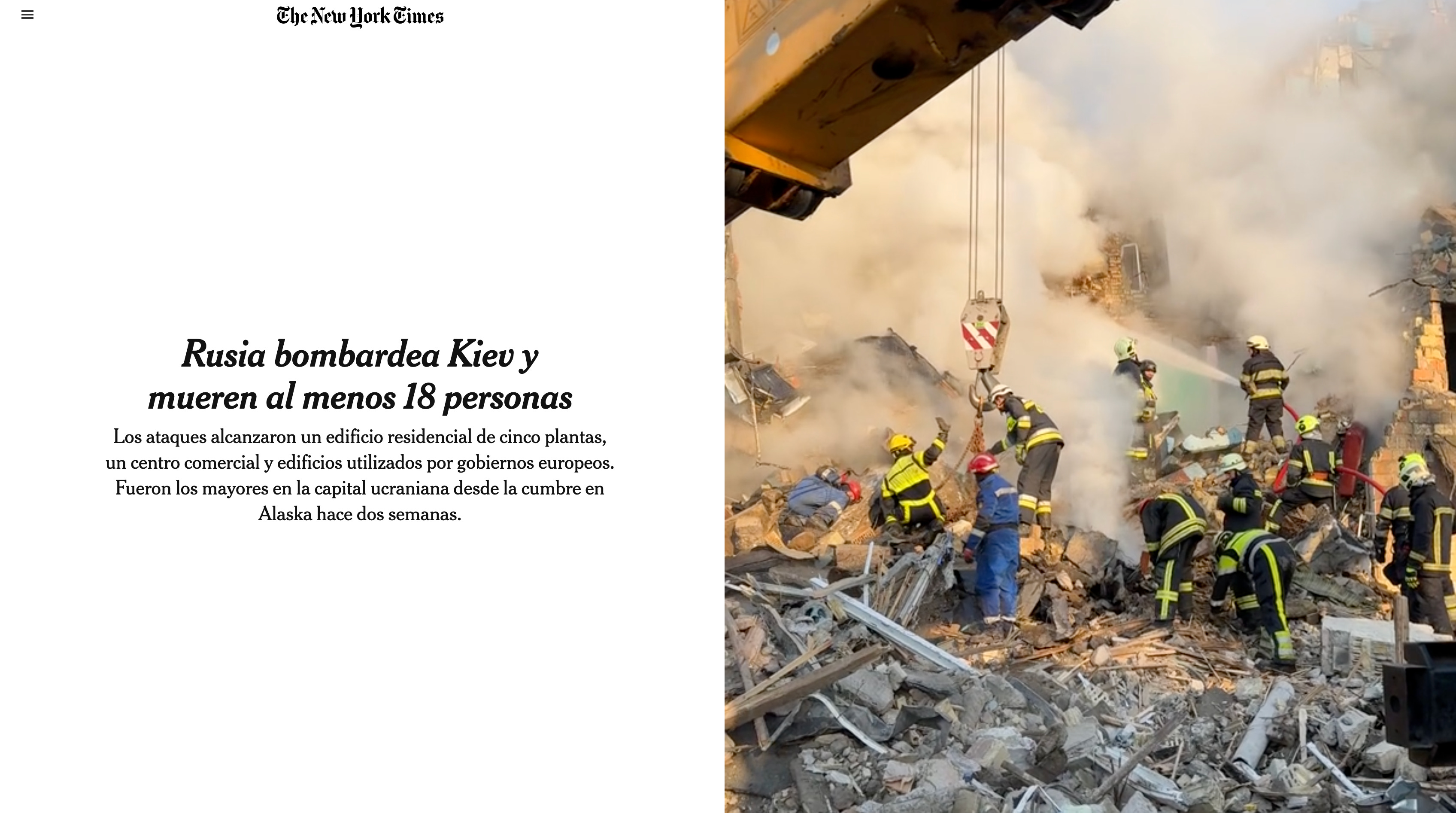 -The New York Times: Rusia bombardea Kiev y mueren al menos 18 personas.