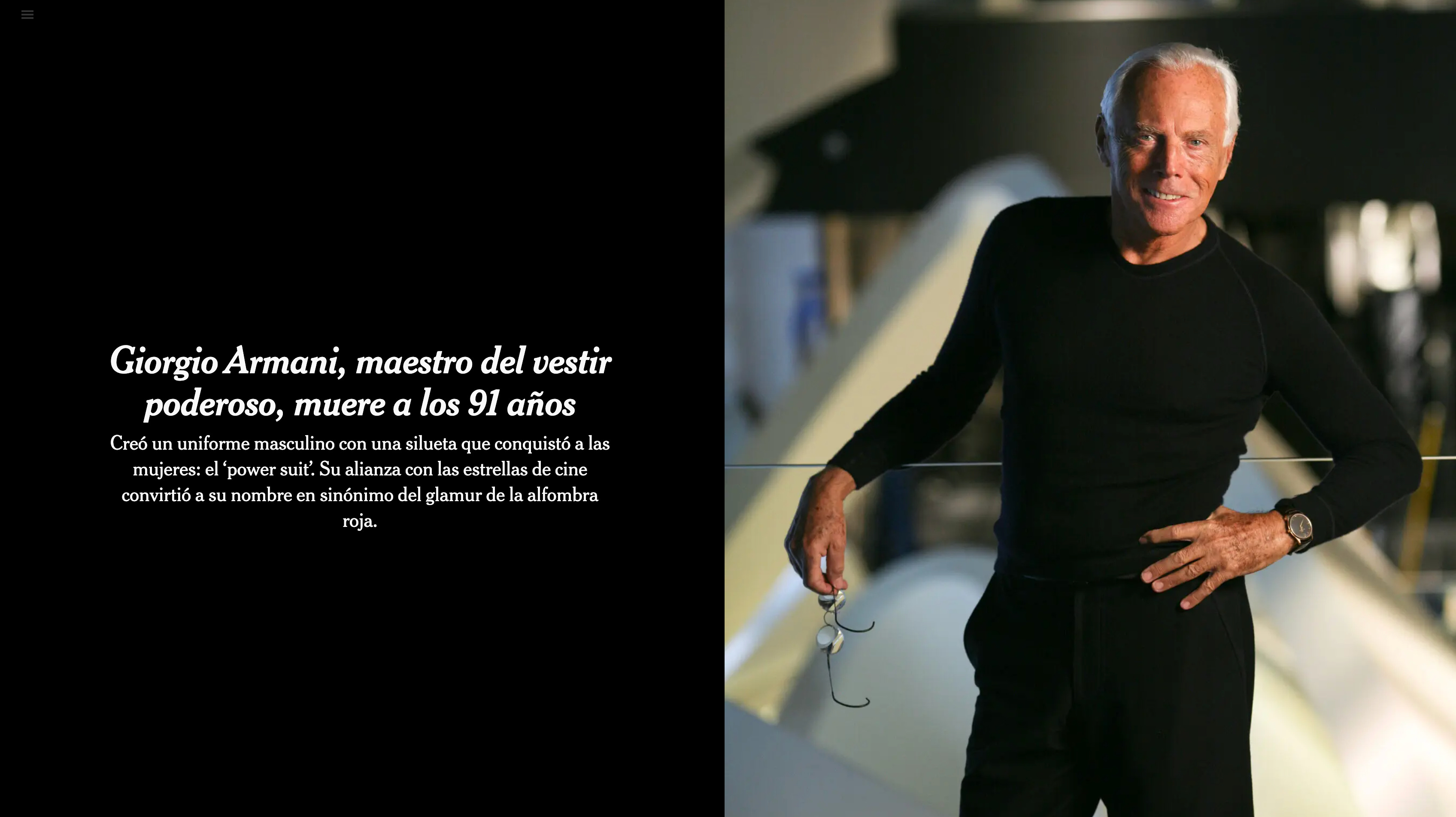 -The New York Times: Giorgio Armani, maestro del vestir poderoso, muere a los 91 años.
