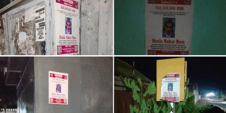 -Monitoreamos: Afiches con la recompensa por la captura de Maduro aparecieron en Caracas, San Cristóbal, Vargas, Guárico y Lara.