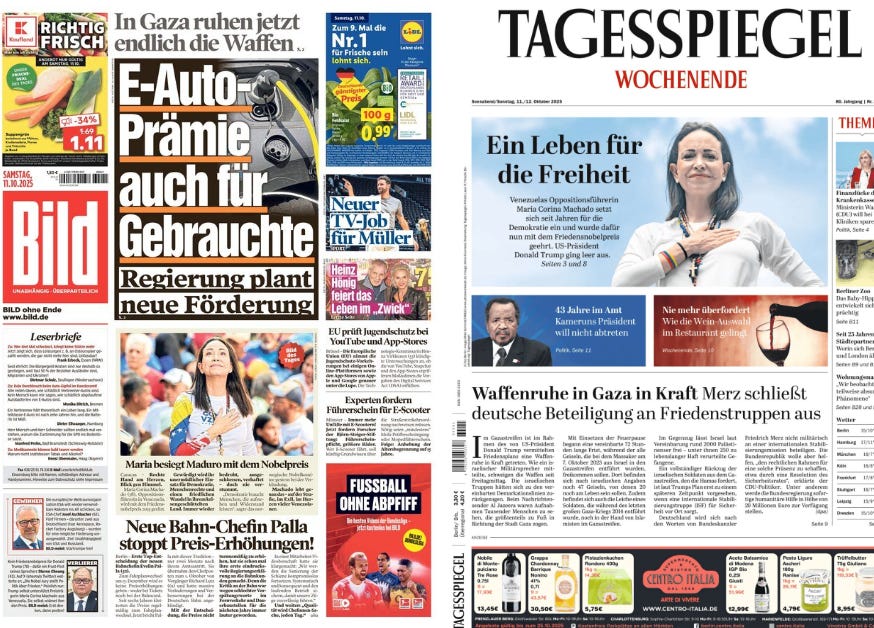 - El País: “Aquí hay un país que ha dado hasta la vida misma por la libertad. Lo asumo como un reconocimiento a los venezolanos en el momento más importante de nuestra vida republicana”, dice María Corina Machado tras ganar el Nobel de la Paz