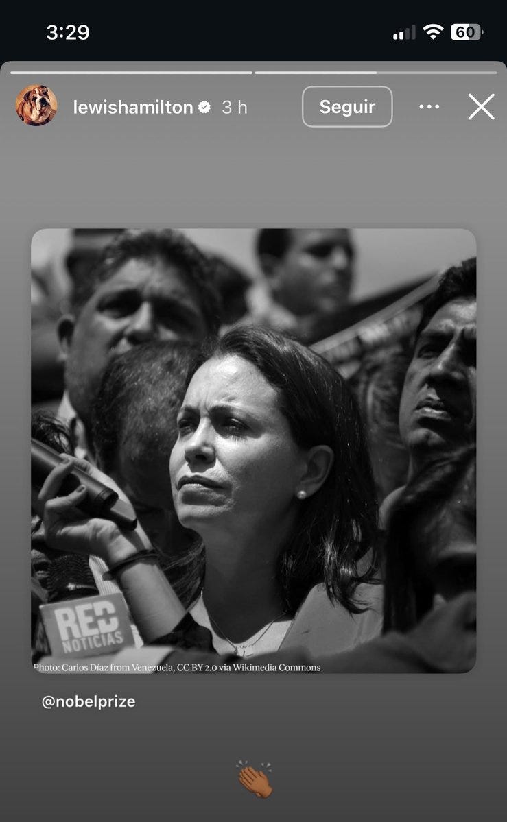 -La Patilla: Hasta Lewis Hamilton (F1) se hizo eco del Premio Nobel de la Paz para María Corina Machado.