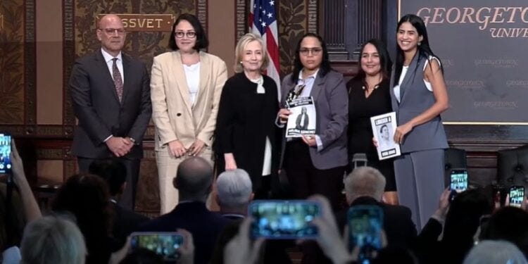 - La Universidad de Georgetown y la exsecretaria de Estado de Estados Unidos, Hillary Rodham Clinton, rindieron homenaje este lunes a las presas políticas venezolanas, en reconocimiento a su valentía en la defensa de los derechos humanos, la democracia y la justicia.