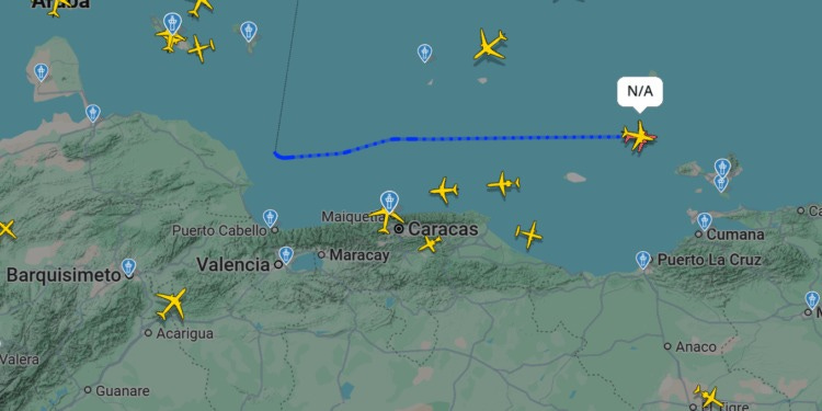 - Los aviones —identificados como HOGAN11 y HOGAN13— partieron desde la base aérea Grand Forks, en Dakota del Norte, con rumbo hacia el Caribe e ingresaron a la Región de Información de Vuelo (FIR) Maiquetía, sobrevolando frente al litoral venezolano desde el estado Falcón hasta la isla de Margarita.