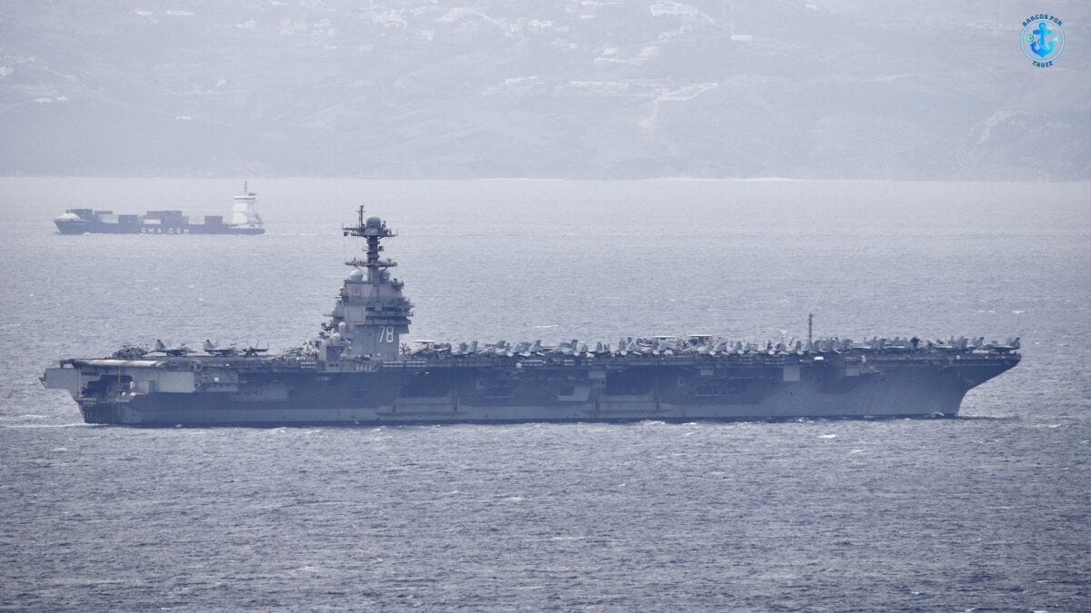 -EFE: Portaaviones Gerald R. Ford de EEUU pasa por España para unirse al despliegue militar en el Caribe.