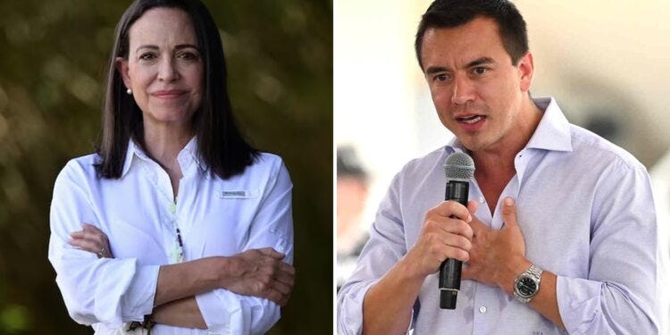 -La Patilla. María Corina Machado a Daniel Noboa tras aceptar su invitación: Será un día histórico para la democracia.
