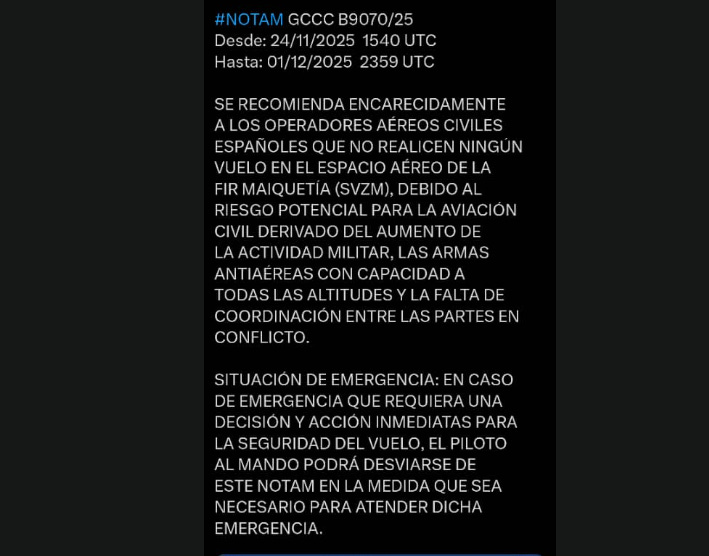 -Monitoreamos: España emitió alerta pidiendo a las aerolíneas evitar vuelos sobre Venezuela por riesgo militar.