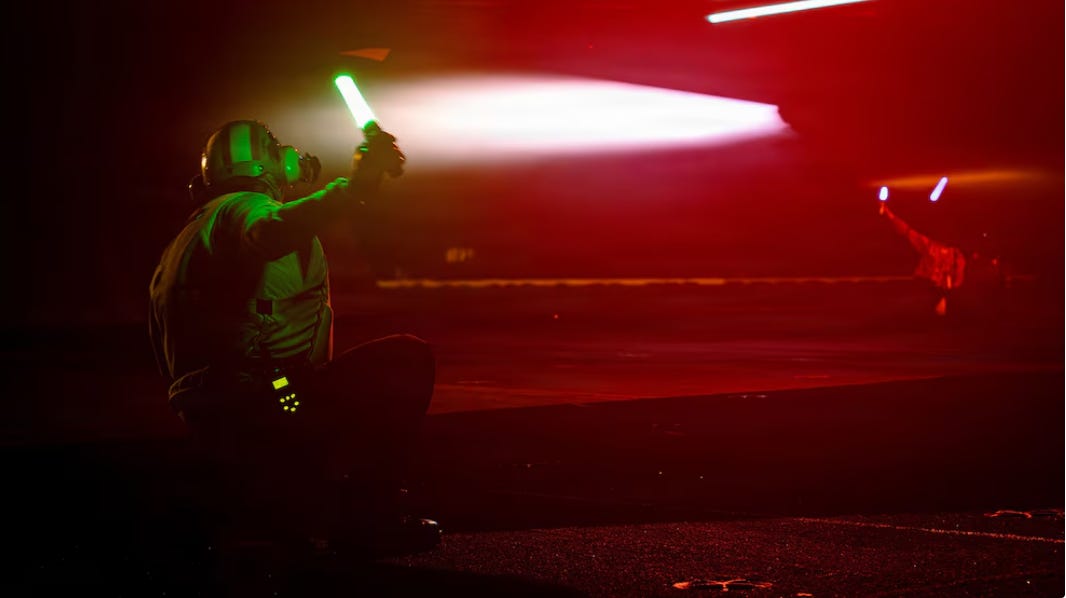 - “La cubierta de vuelo nunca duerme”, y las operaciones responden al despliegue de fuerzas estadounidenses en apoyo al Comando Sur para interrumpir el tráfico ilícito de drogas y reforzar la seguridad regional.