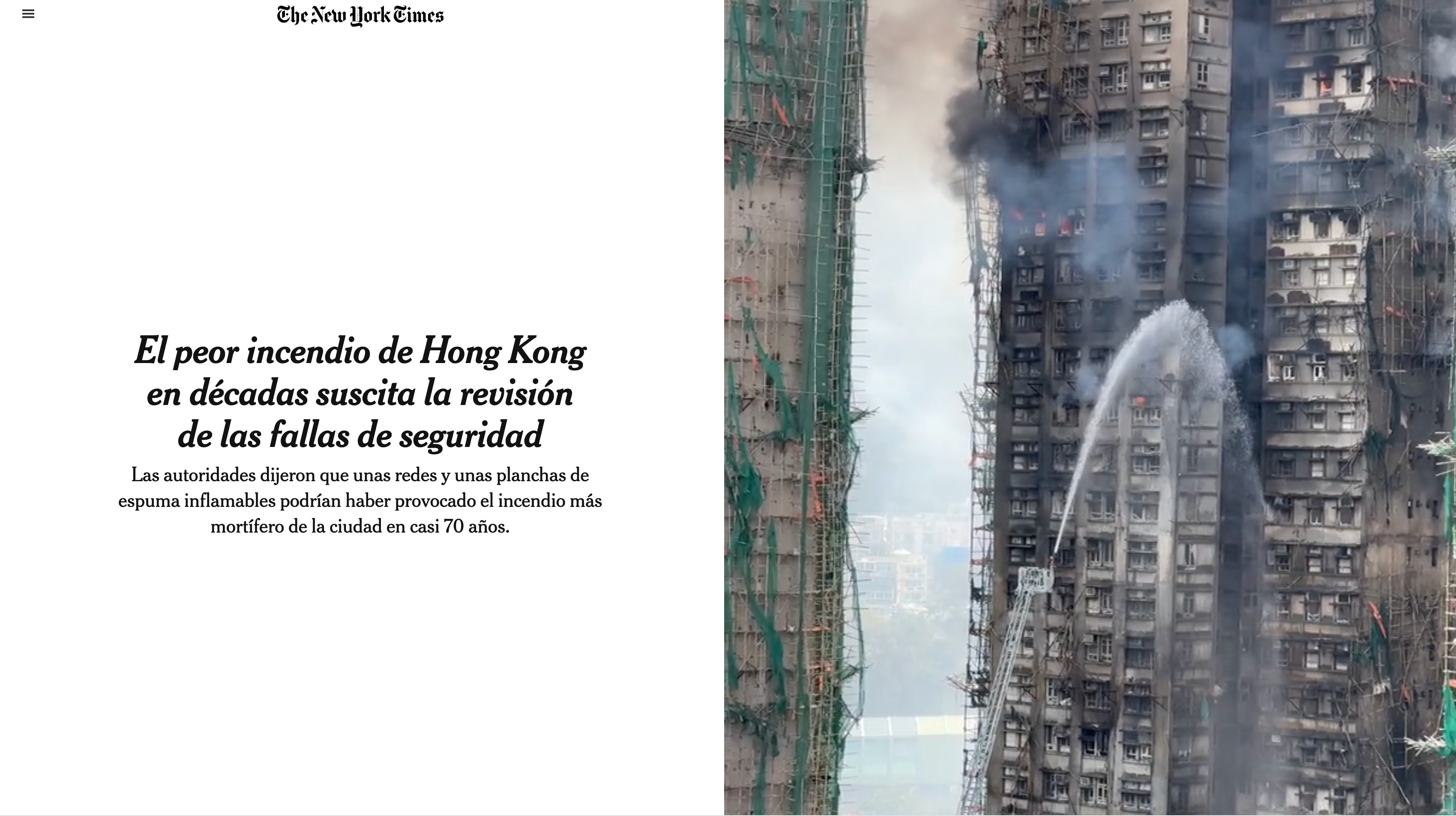 -The New York Times: El peor incendio de Hong Kong en décadas suscita la revisión de las fallas de seguridad.