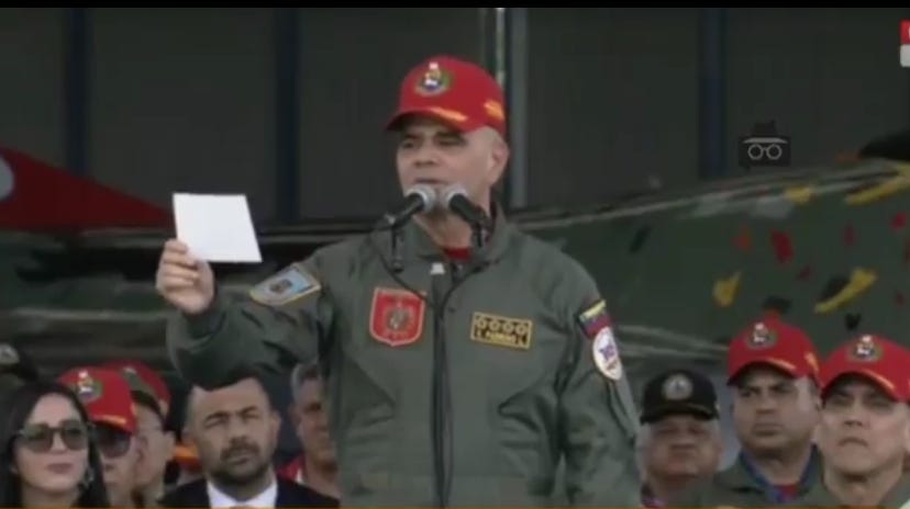 - Padrino López necesita una chuleta en mano para leer un mensaje de aliento a las FANB. Calcula tú…