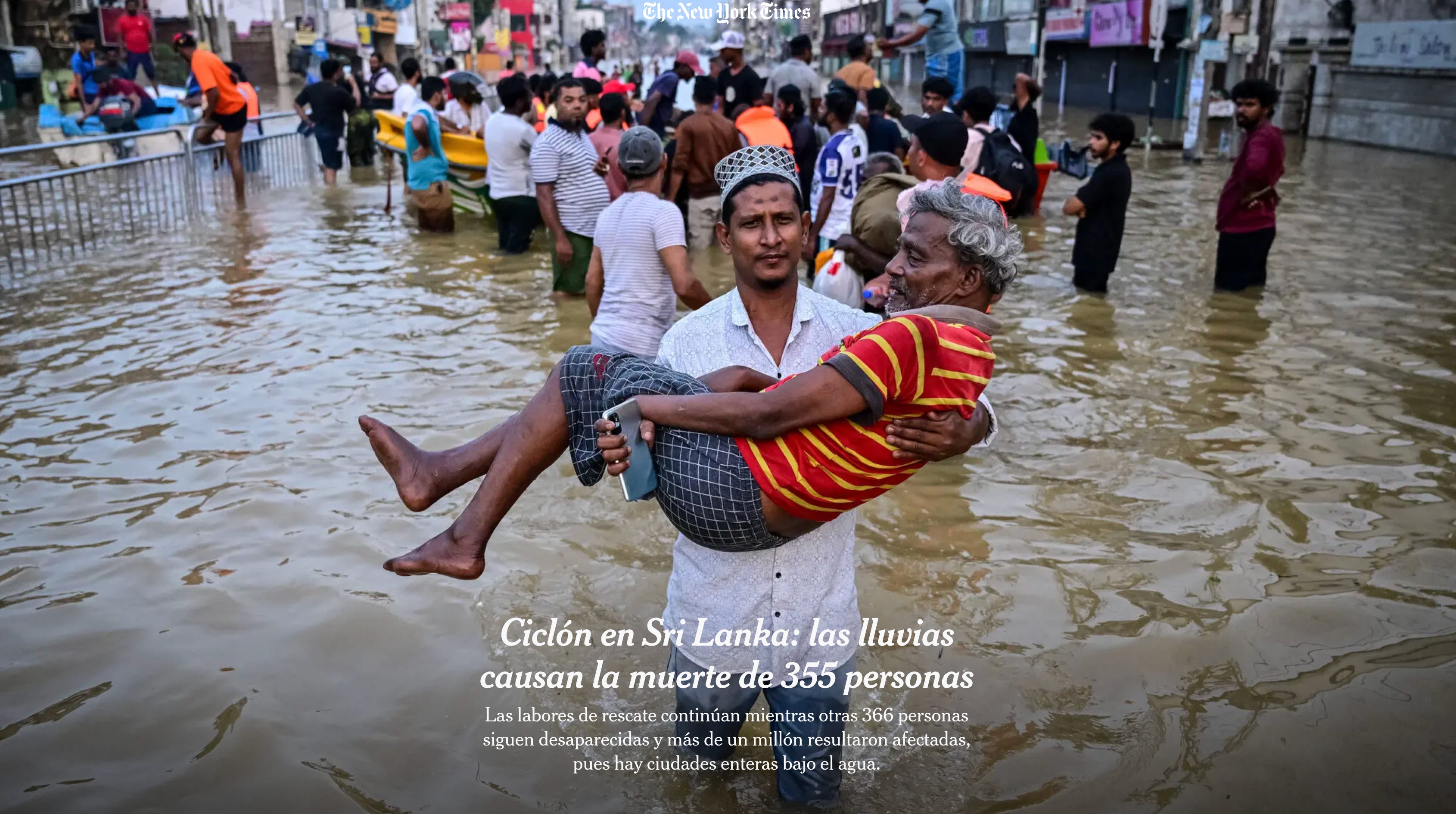 -The New York Times. Ciclón en Sri Lanka: las lluvias causan la muerte de 355 personas.