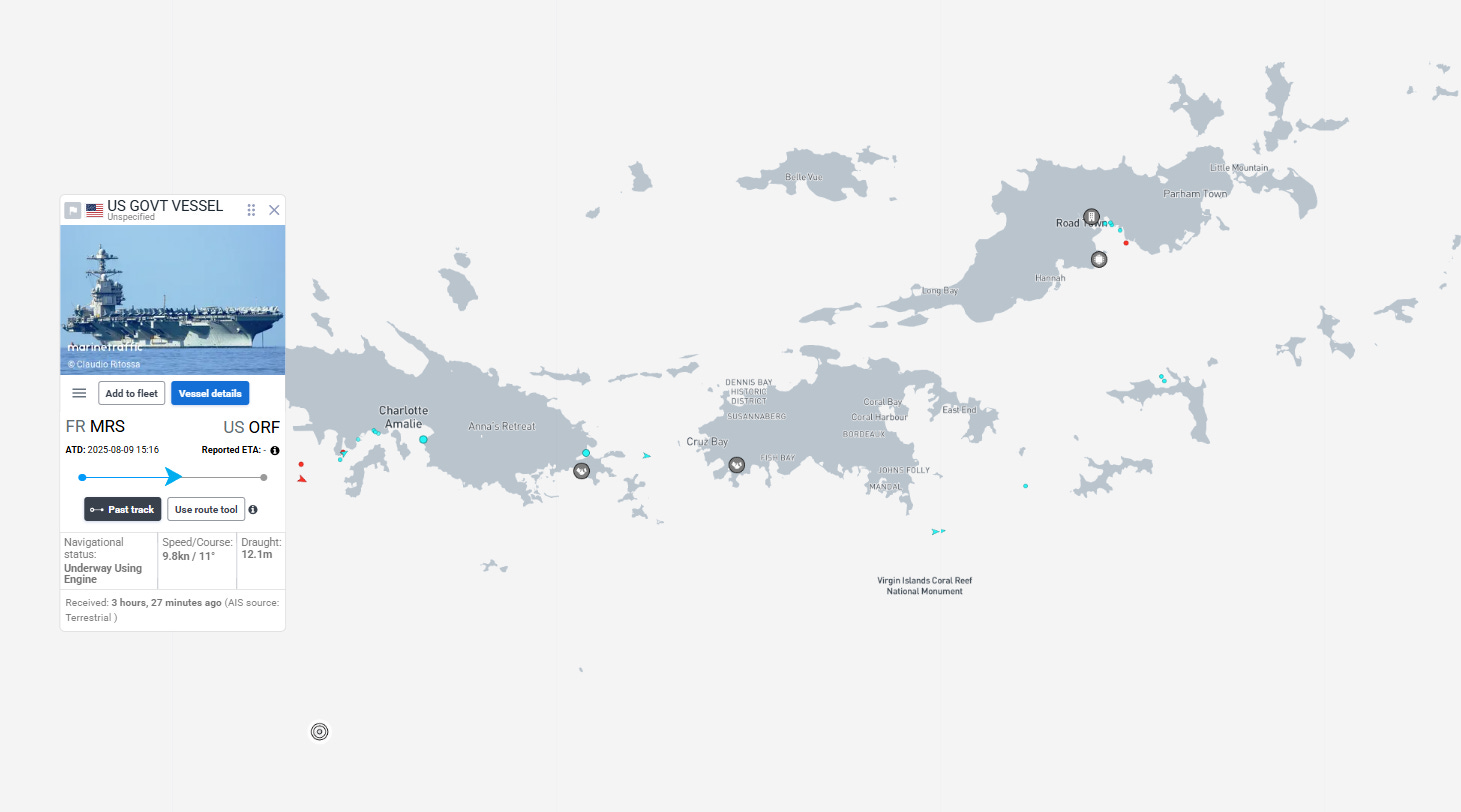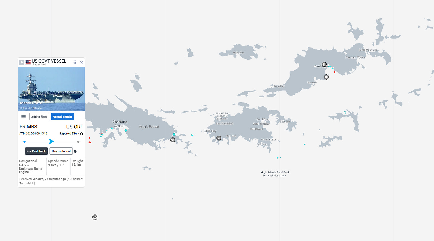 -La Patilla: El portaaviones de Trump, el portaaviones USS Gerald R. Ford (CVN-78), encendió su transpondedor para recordarle a Maduro lo cerca que está.