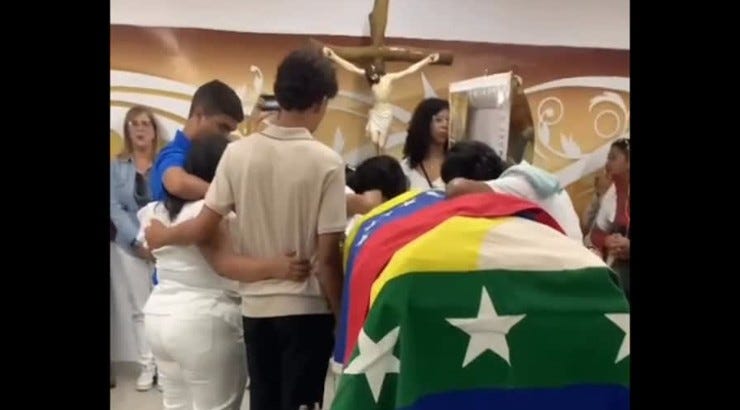 - En las imágenes compartidas en redes sociales, se pueden ver a sus familiares alrededor de un ataúd cubierto con las banderas de Venezuela y de Nueva Esparta.