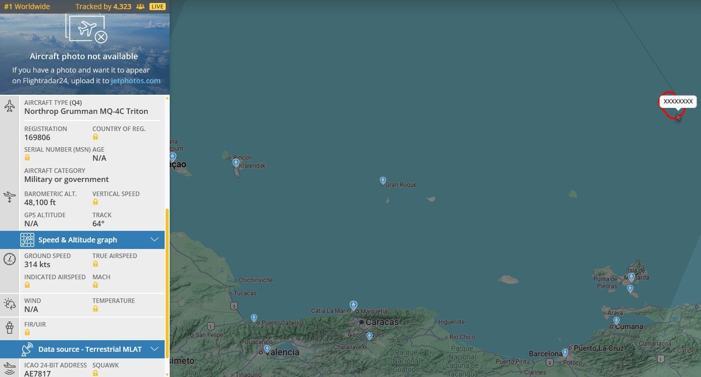 -La Patilla: Por enésima vez, un dron furtivo MQ-4C Triton visitó el FIR Maiquetía para espiar al chavismo.