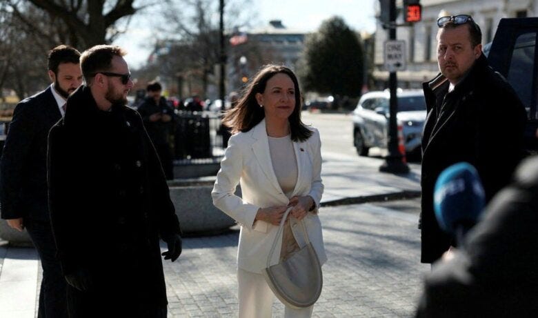- Tras su reunión con Donald Trump en la Casa Blanca, María Corina Machado se presentó en el Capitolio de Estados Unidos para sostener un encuentro con varios senadores republicanos y demócratas.