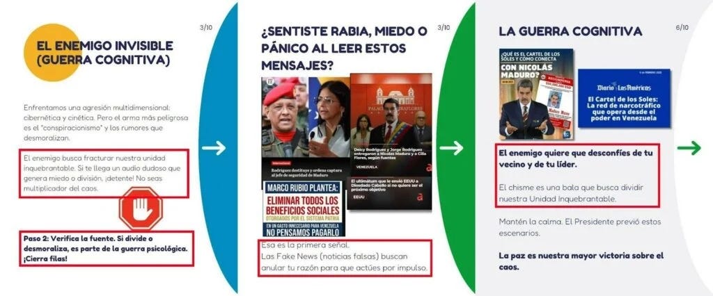 - Las guías, dirigidas a militantes y activistas progubernamentales, explican cómo responder ante rumores, audios, denuncias u otros mensajes considerados adversos en medio de la crisis.