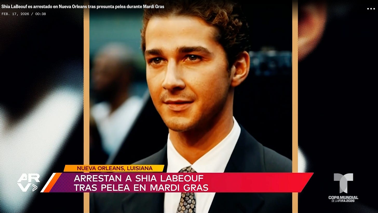 -Telemundo: Shia LaBeouf es arrestado en Nueva Orleans tras presunta pelea durante Mardi Gras.