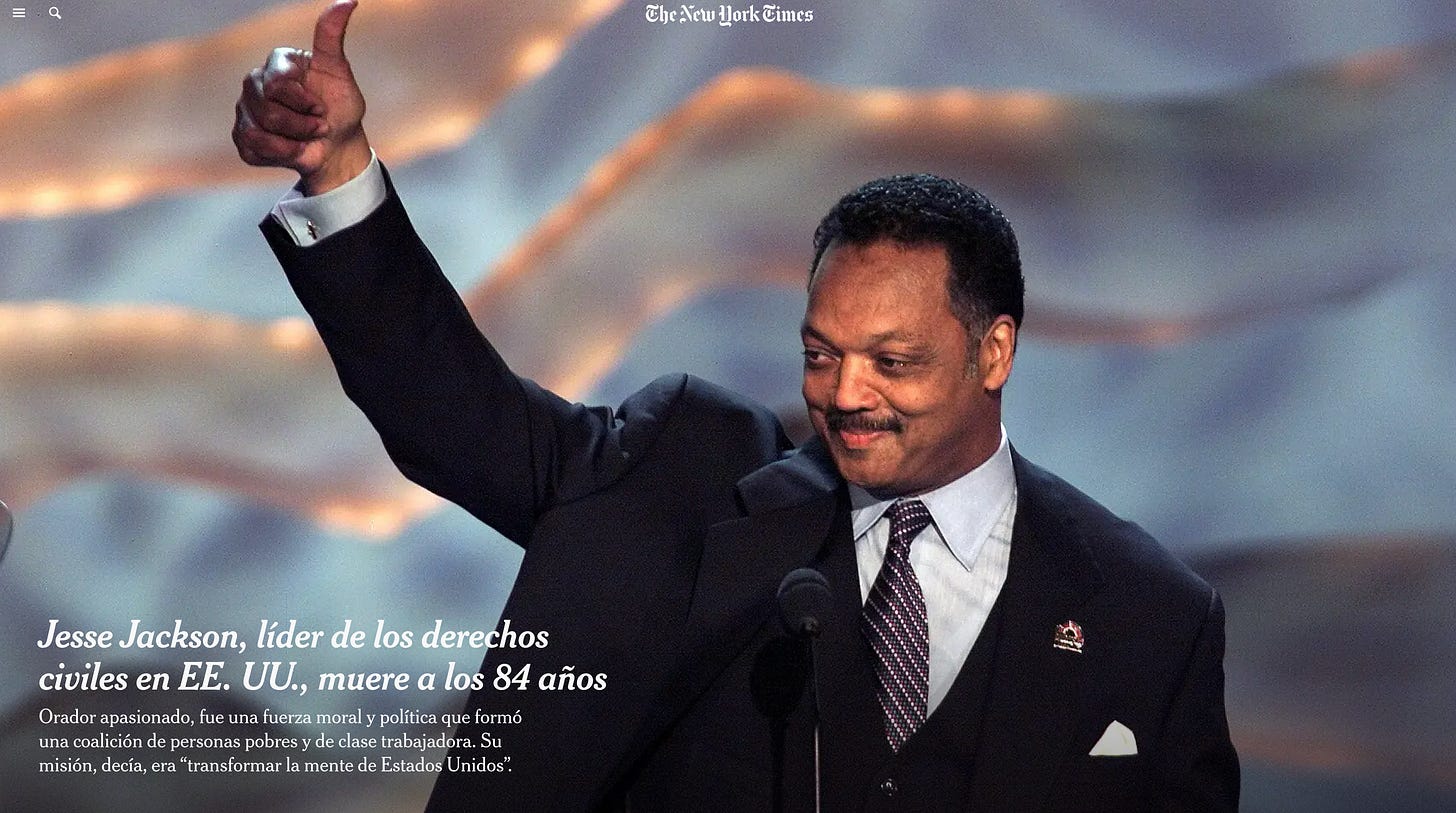 -The New York Times: Jesse Jackson, líder de los derechos civiles en EE. UU., muere a los 84 años.