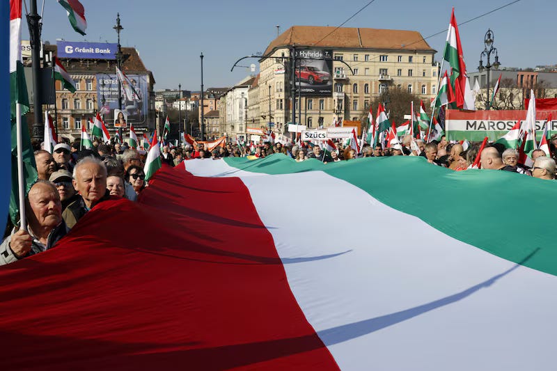 -Bloomberg: La oposición húngara saca músculo con una manifestación masiva contra Orban.
