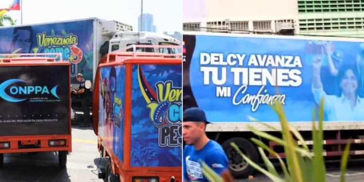 - Los camiones, que hasta 2025 estaban decorados con el rojo característico del oficialismo y las figuras del chavismo, ahora exhiben una estética azul y el lema: “Delcy avanza, tú tienes mi confianza”, acompañado de su fotografía a gran escala.