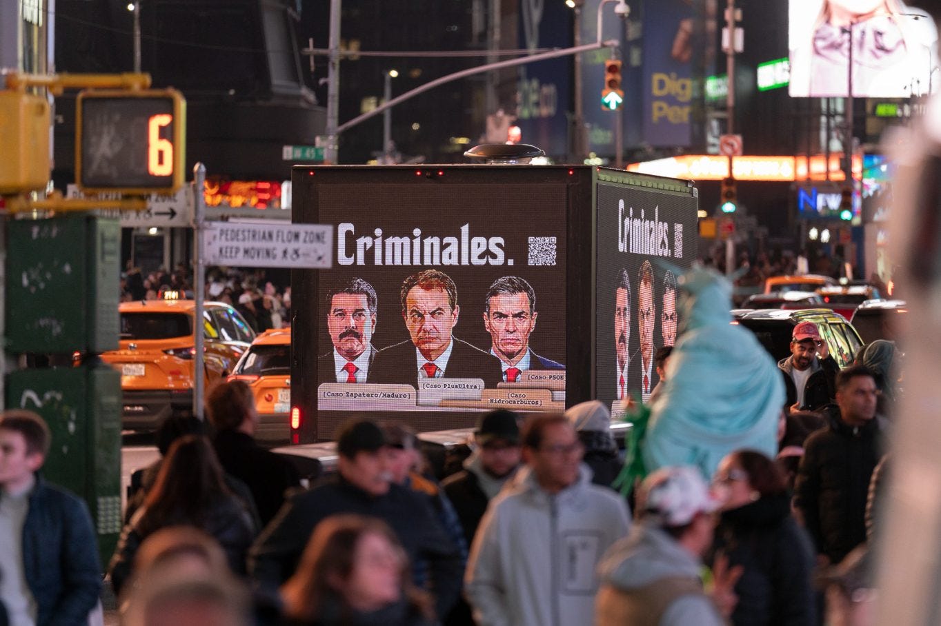 - Nicolás Maduro, José Luis Rodríguez Zapatero y Pedro Sánchez fueron señalados como «criminales» por sus críticos de la organización española Hazte Oír, cuya ingeniosa campaña llegó el pasado jueves a Nueva York, Estados Unidos.