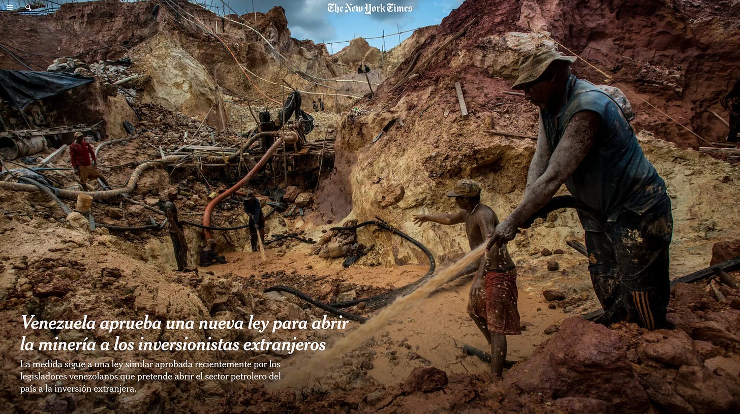 -The New York Times: Venezuela aprueba una nueva ley para abrir la minería a los inversionistas extranjeros.