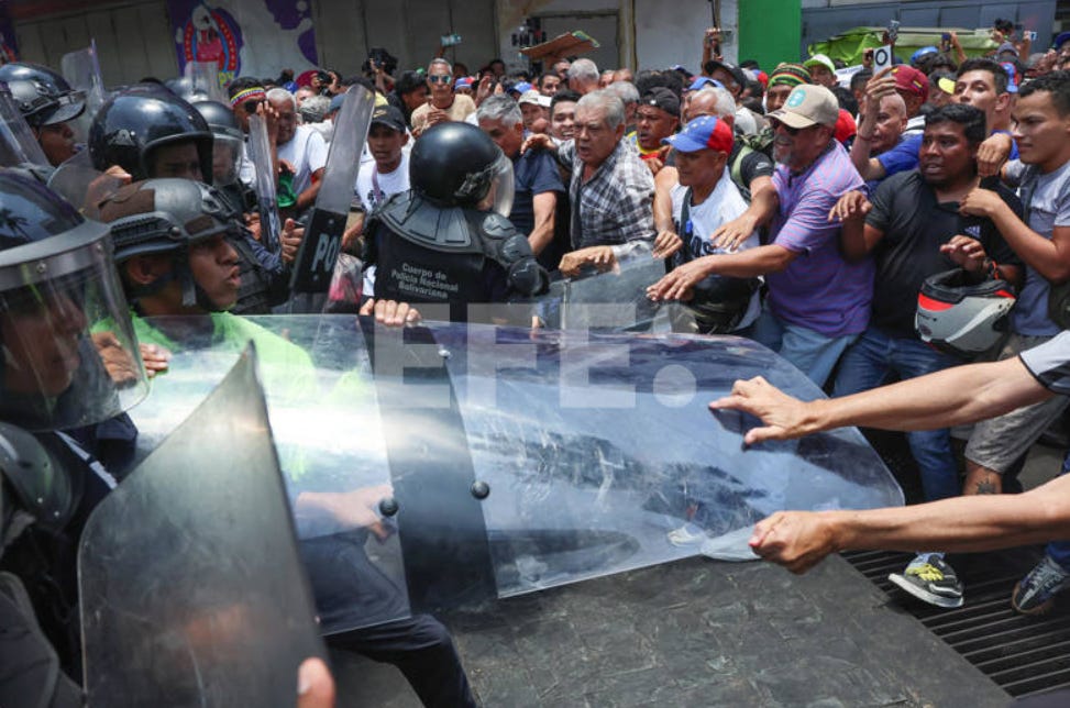 -EFE: La Policía bloquea una marcha de trabajadores que intenta llegar a la sede de Gobierno de Venezuela.