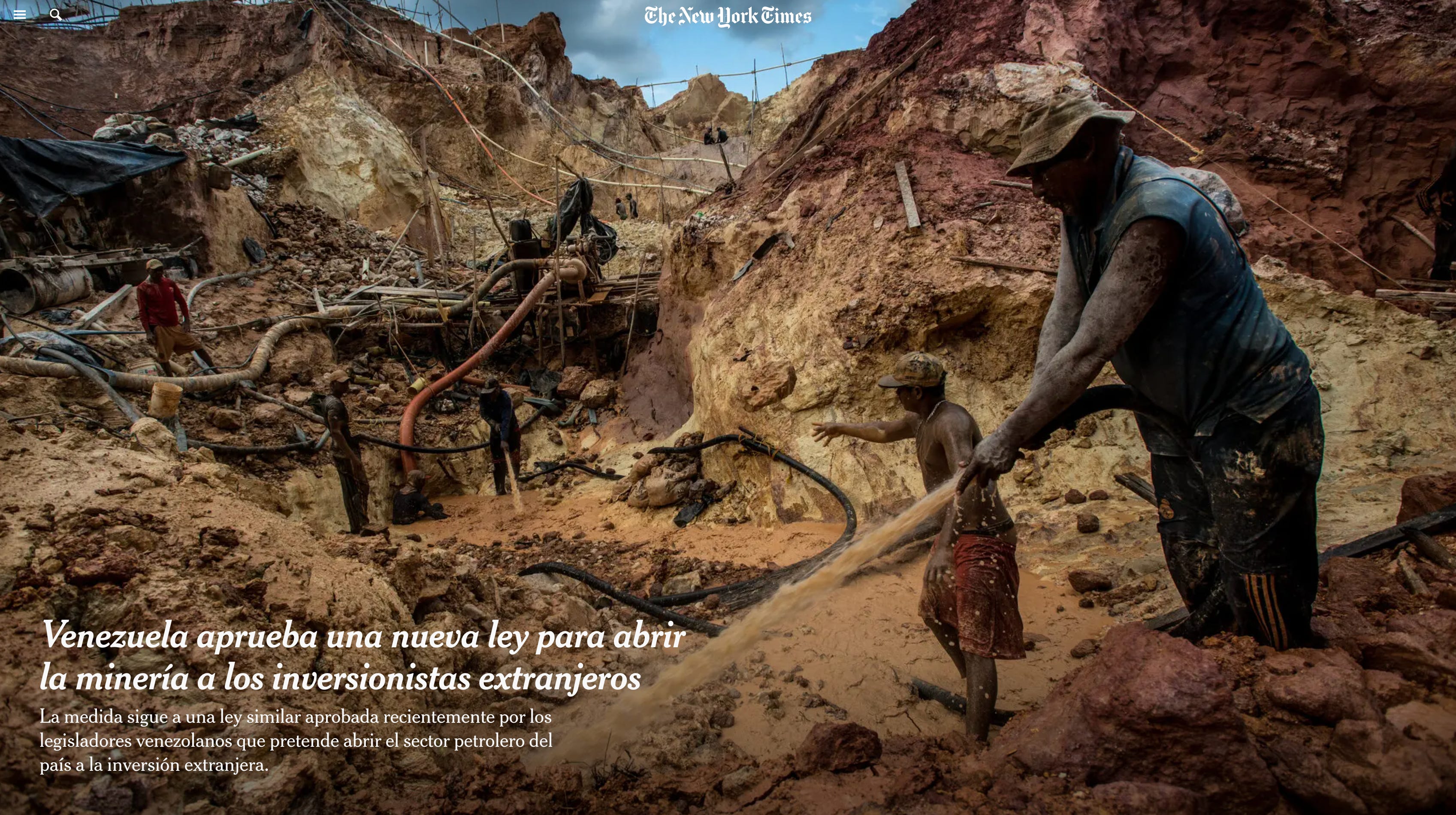 -The New York Times: Venezuela aprueba una nueva ley para abrir la minería a los inversionistas extranjeros.